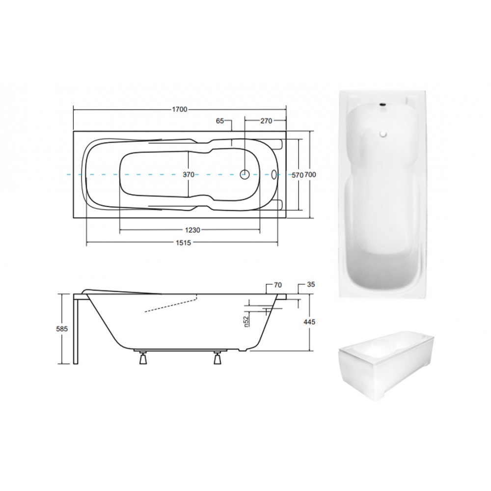 Опис Ванна акрилова MAJKA NOVA 170х70 (соло) без ніг (mira)