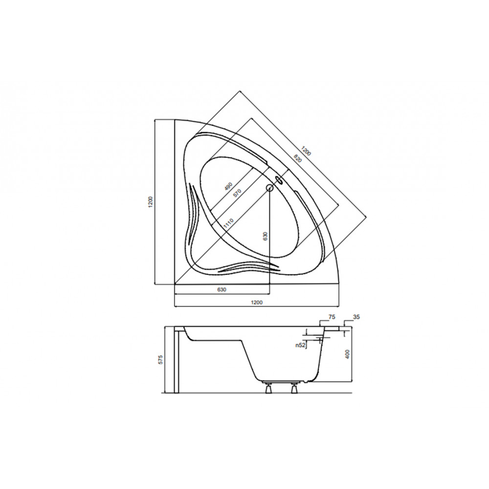 Опис Ванна акрилова MIA 120x120 (соло) без ніг