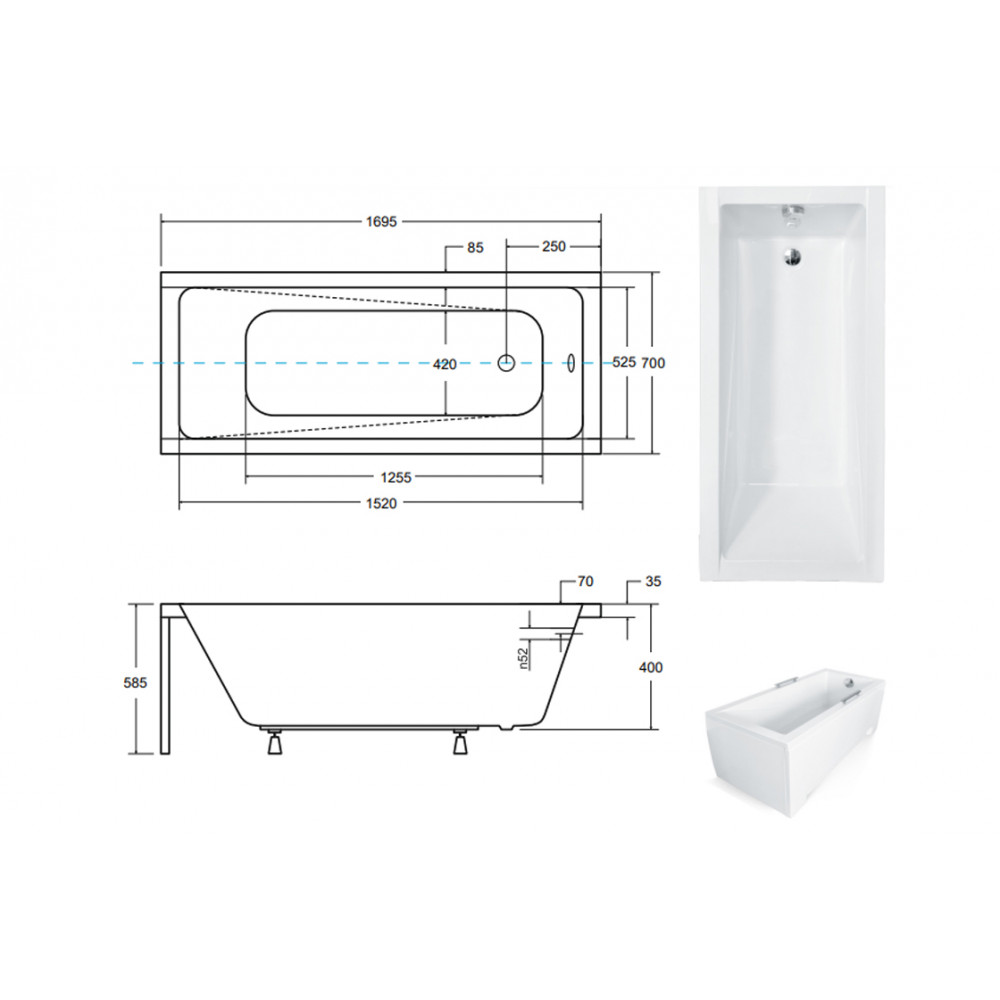 Опис Ванна акрилова MODERN 170Х70 (соло) без ніг