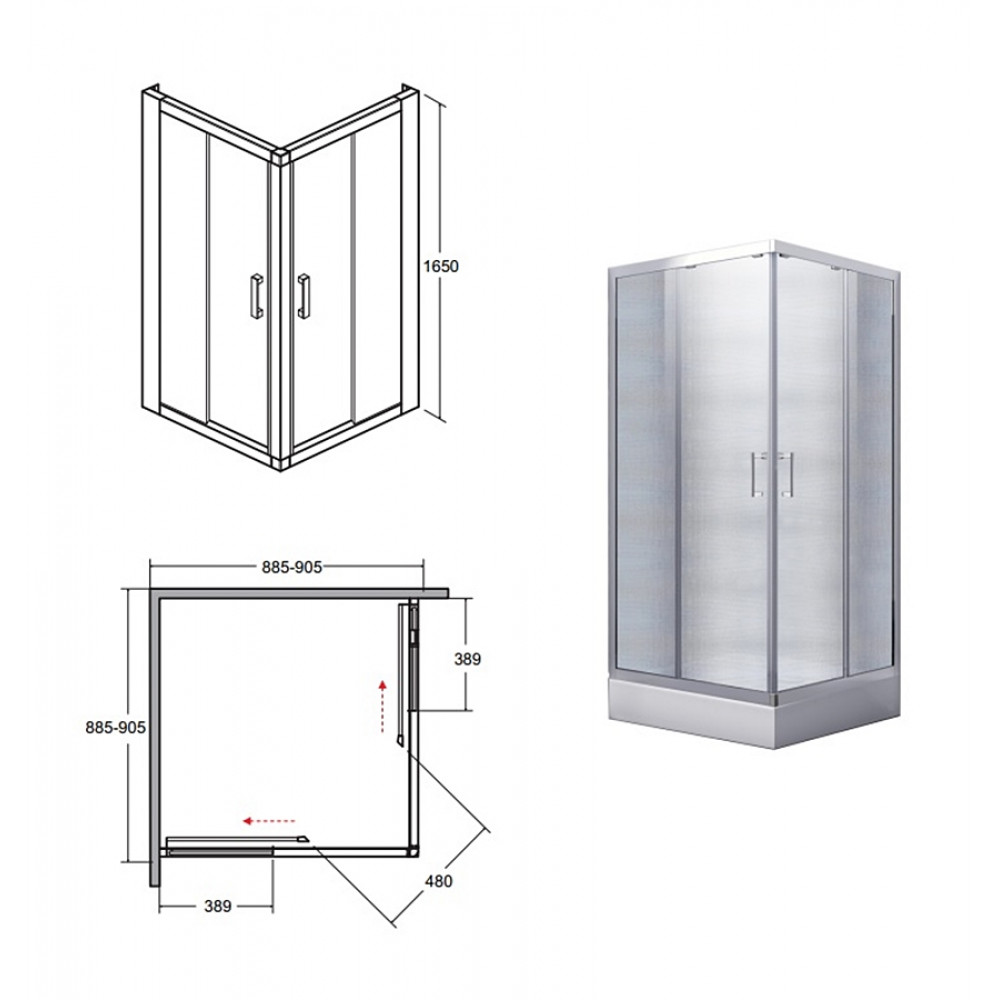 Опис Кабіна квадратна MODERN 90x90x165 скло mrozone, профіль хромований