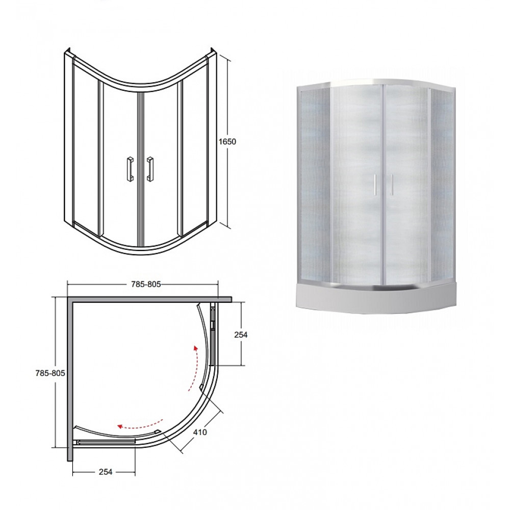 Опис Кабіна півкругла MODERN 80x80x165 універсальна: скло grigio, профіль хромований