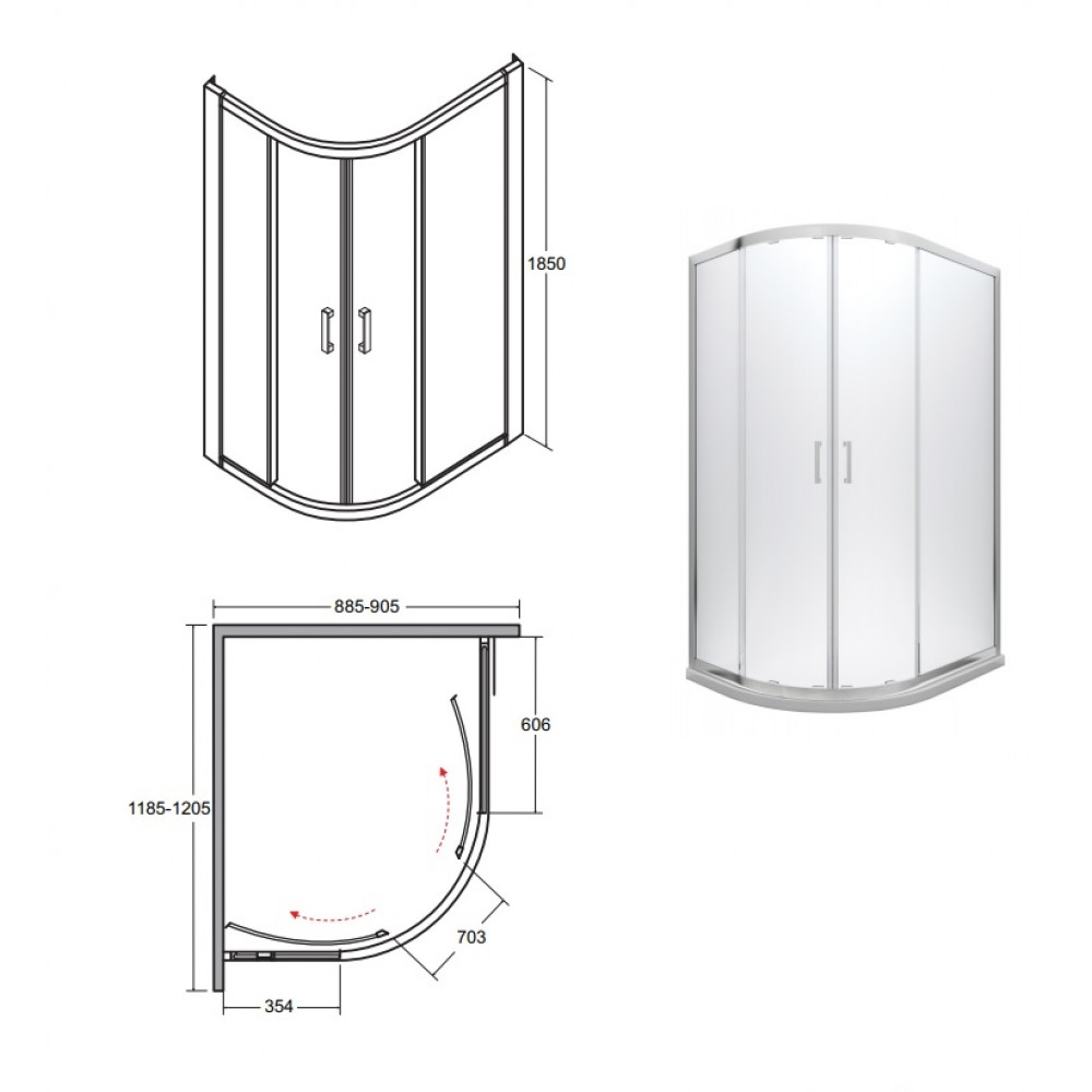 Опис Кабіна асиметрична MODERN 120x90x185 універсальна: скло grigio, профіль хромований