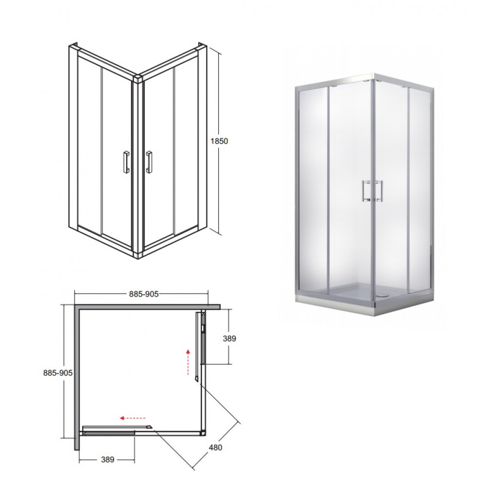Опис Кабіна квадратна MODERN 90x90x185 універсальна: скло прозоре, профіль хромований