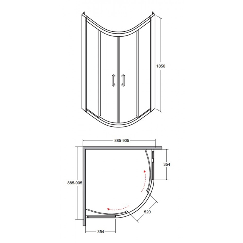 Опис Кабіна півкругла MODERN 90x90x185 універсальна: скло grigio, профіль хромований