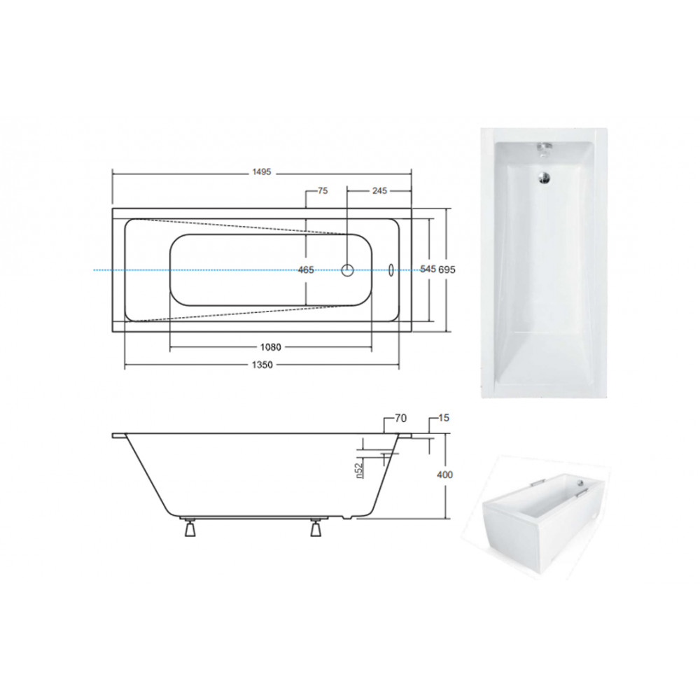 Опис Ванна акрилова MODERN SLIM 150х70 (соло) без ніг