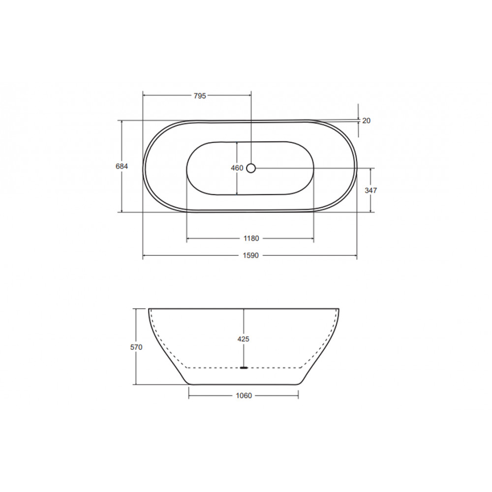 Опис Ванна MOYA 160х70 біла матова, з сифоном клік-клак