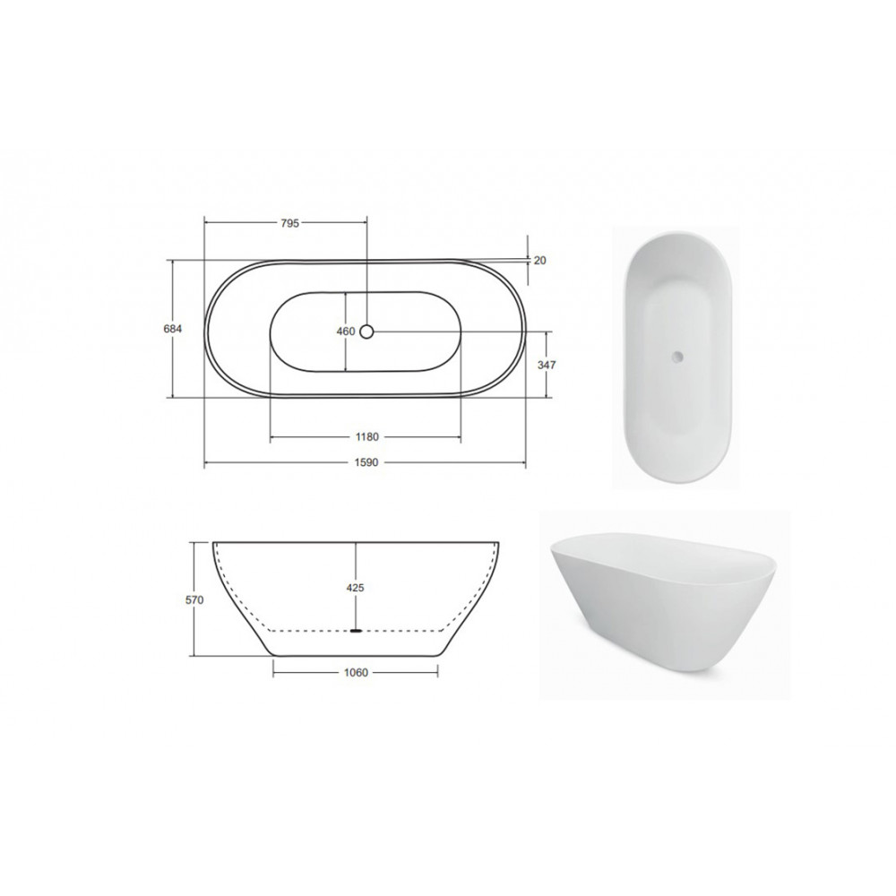 Опис Ванна MOYA 160х70 з білим сифоном клік-клак