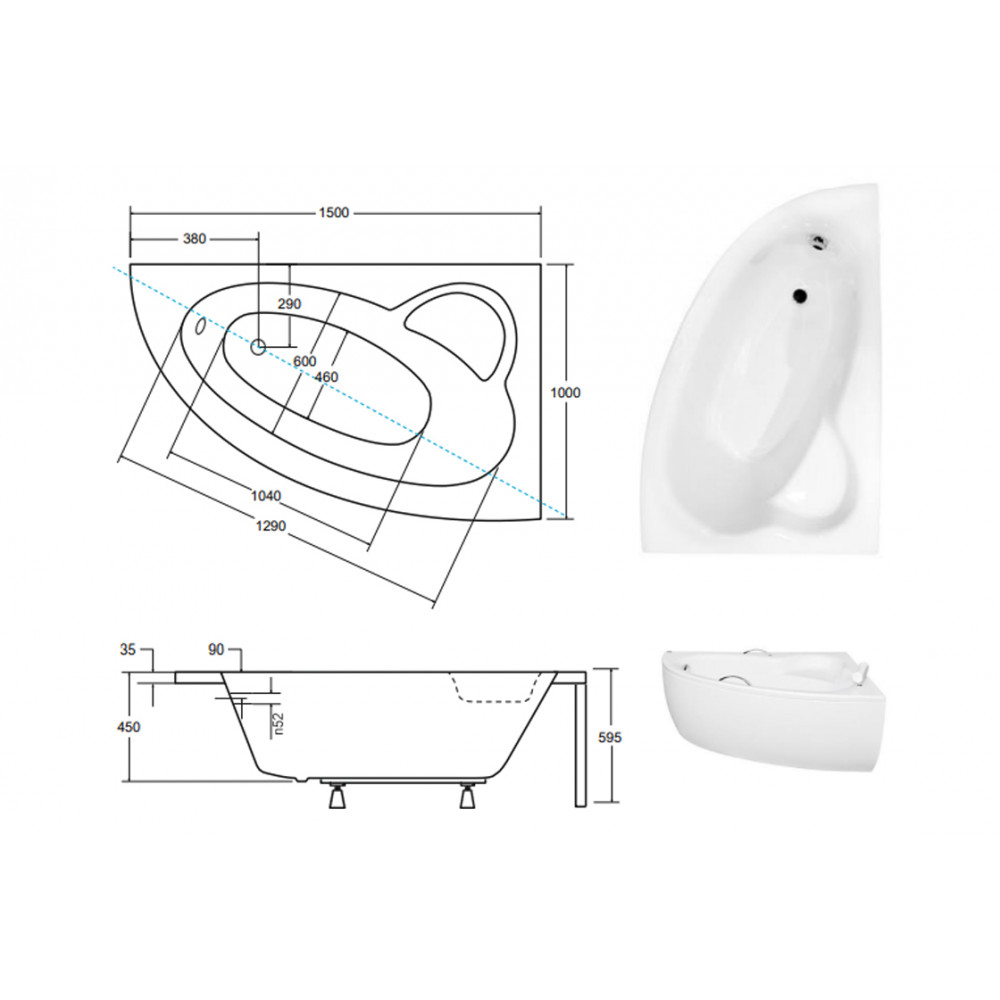 Опис Ванна акрилова NATALIA Premium 150х100 права (підголовник + ручки) без ніг та обудови
