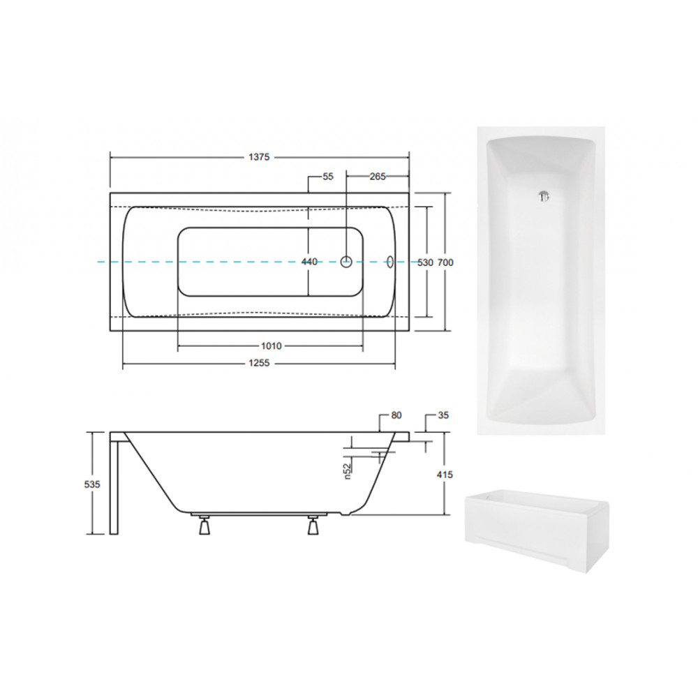 Опис Ванна акрилова OPTIMA 140х70 (соло) без ніг