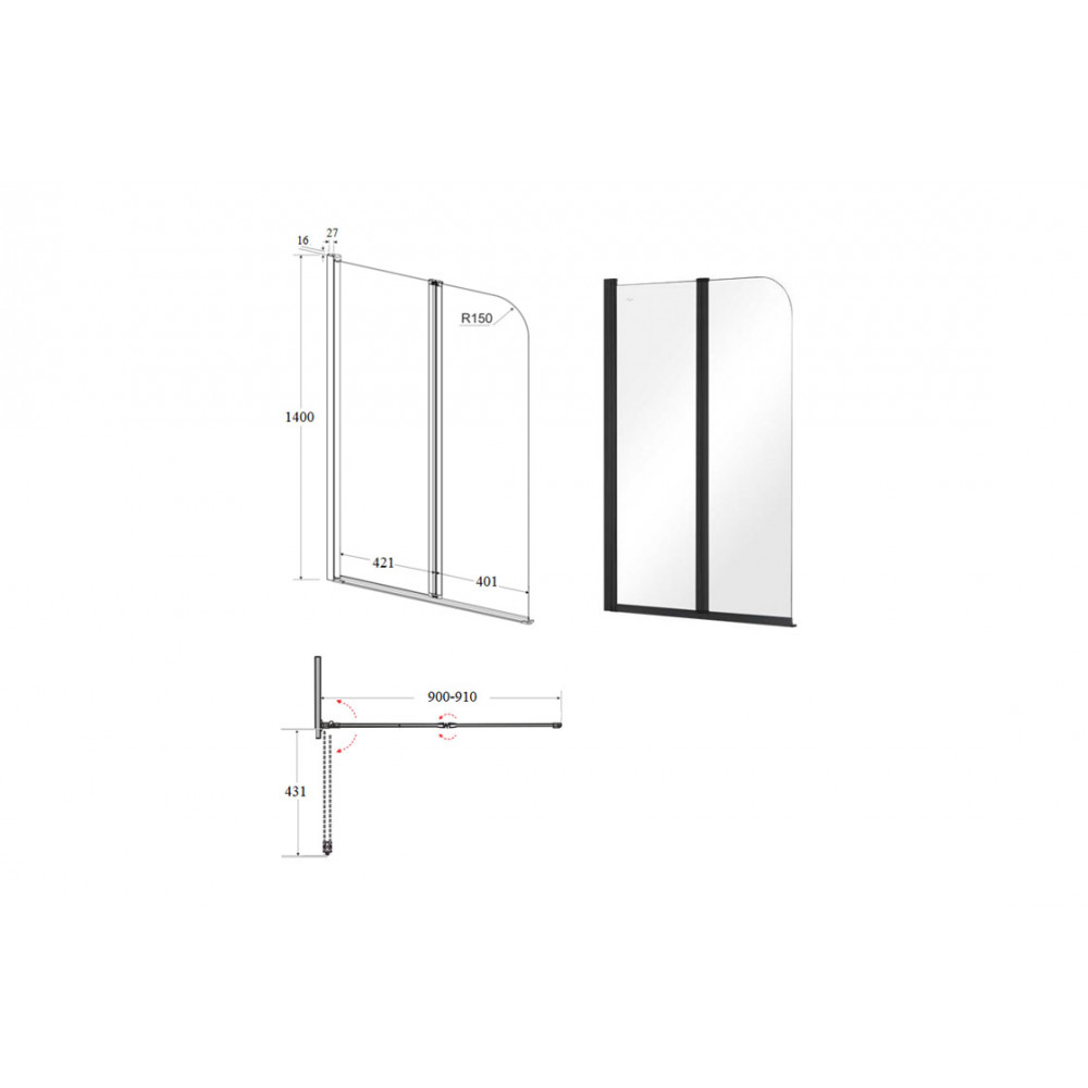 Опис Шторка для ванни PRIME BLACK NEW 2 90x140 чорна
