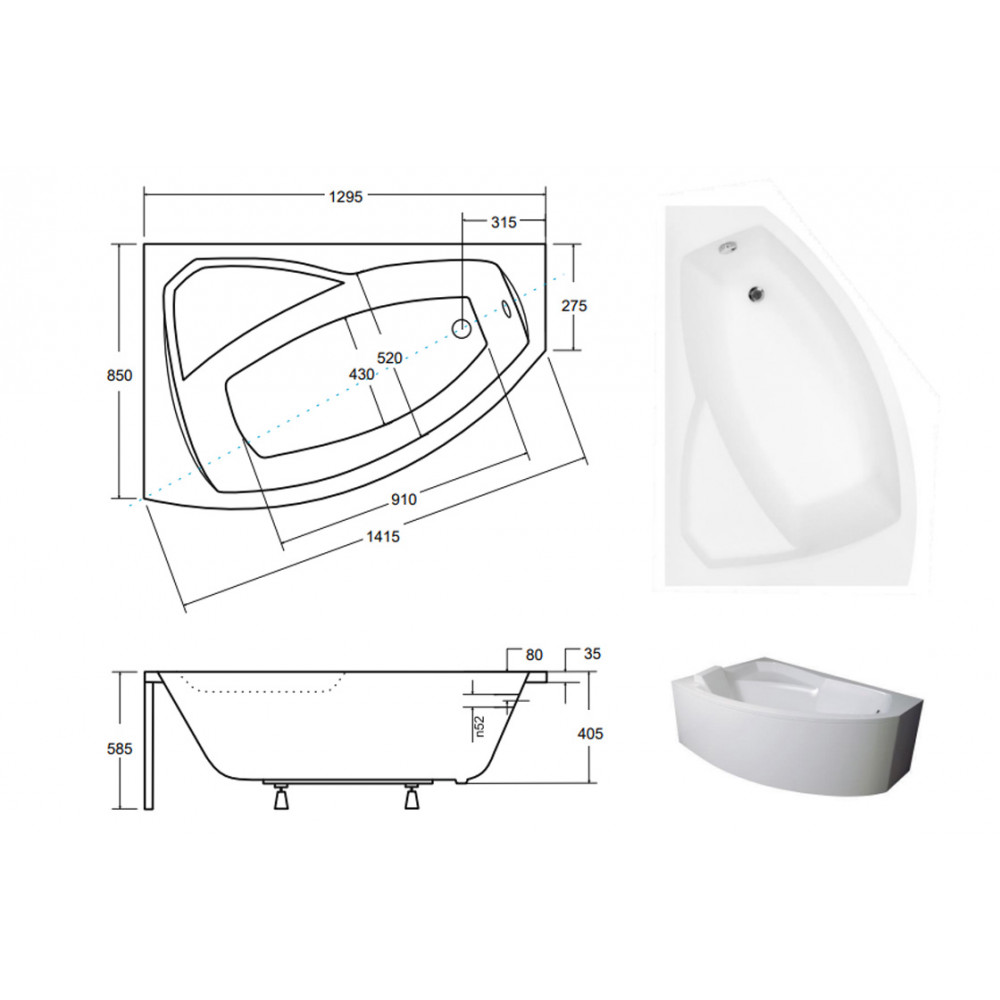 Опис Ванна акрилова RIMA 130х85 Ліва (соло) без ніг