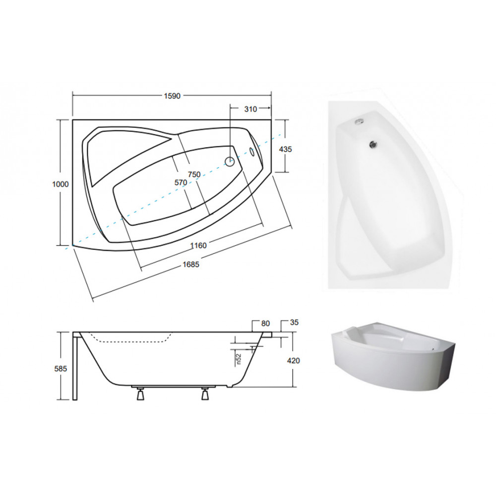 Опис Ванна акрилова RIMA 160х100 Ліва (соло) без ніг