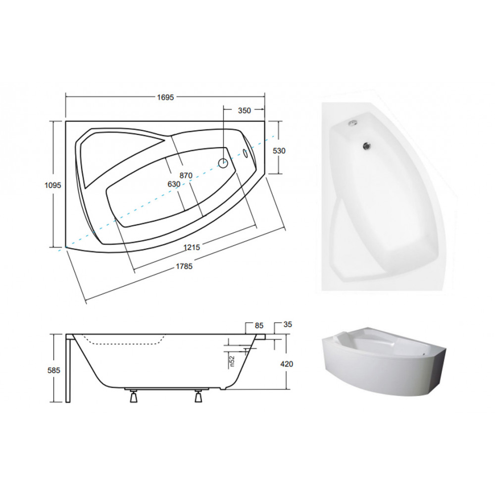 Опис Ванна акрилова RIMA 170х110 Ліва (соло) без ніг