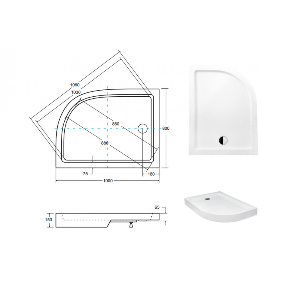 Опис Піддон півкруглий SATURN L лівий 100х80х4/15 см + ноги