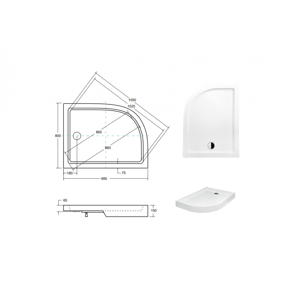 Опис Піддон півкруглий SATURN Р правий 100х80х4/15 см + ноги