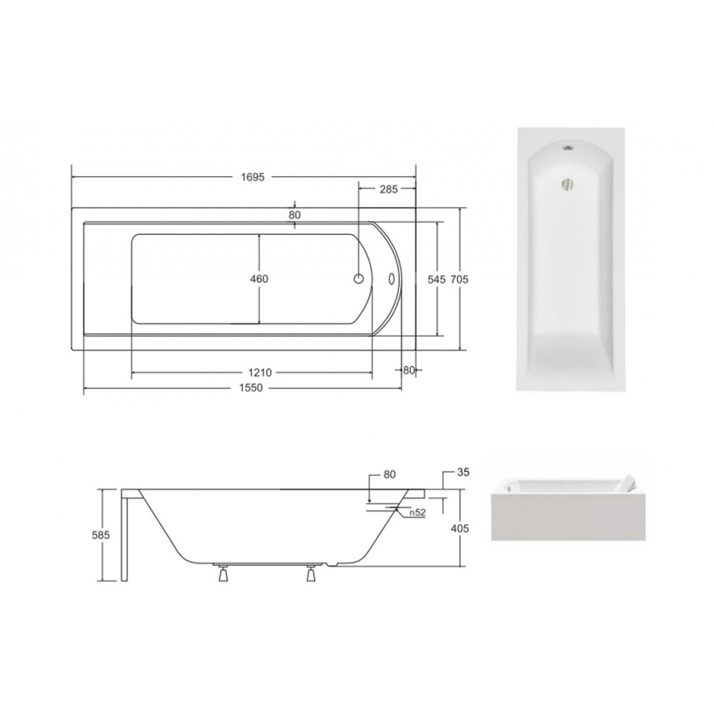 Опис Ванна акрилова SHEA 170х70 (соло) без ніг