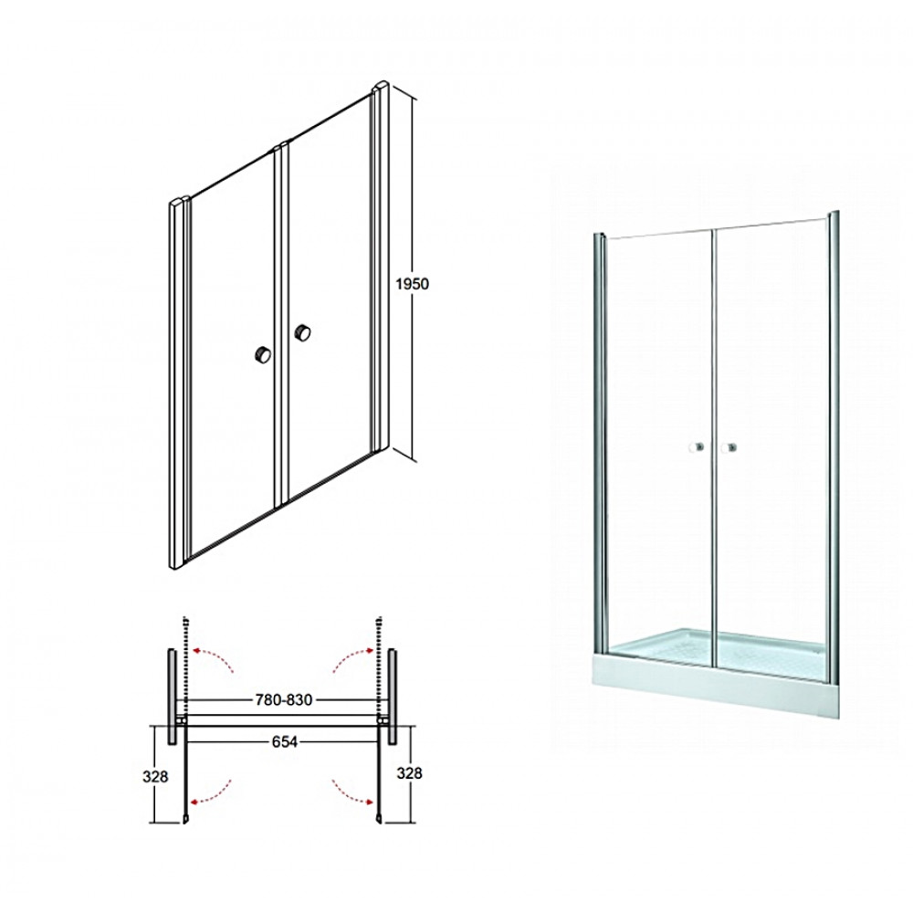 Опис Душові двері Sinco due 80х195 хромовані блискучі
