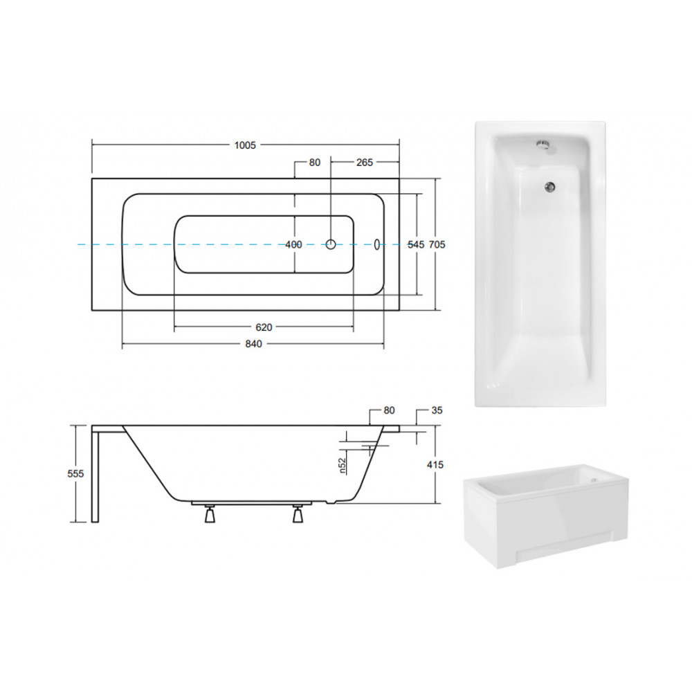 Опис Ванна акрилова TALIA 100х70 (соло) без ніг