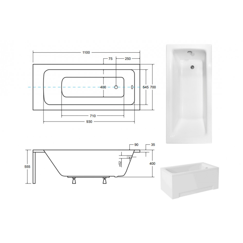 Опис Ванна акрилова TALIA 110х70 (соло) без ніг