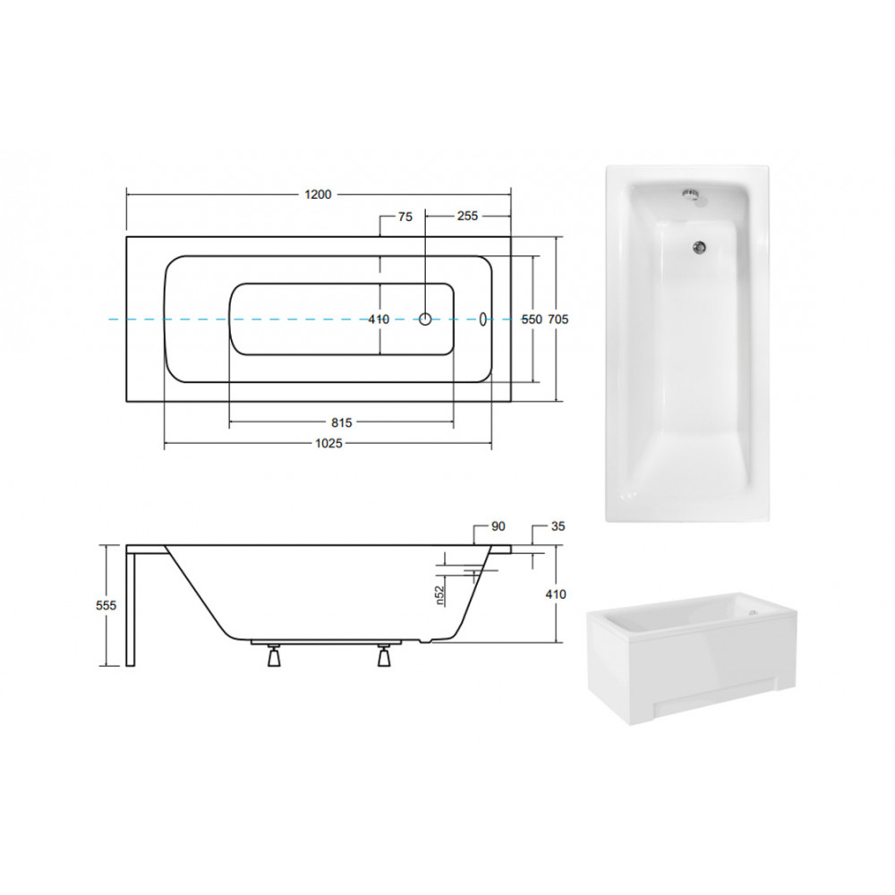 Опис Ванна акрилова TALIA 120х70 (соло) без ніг