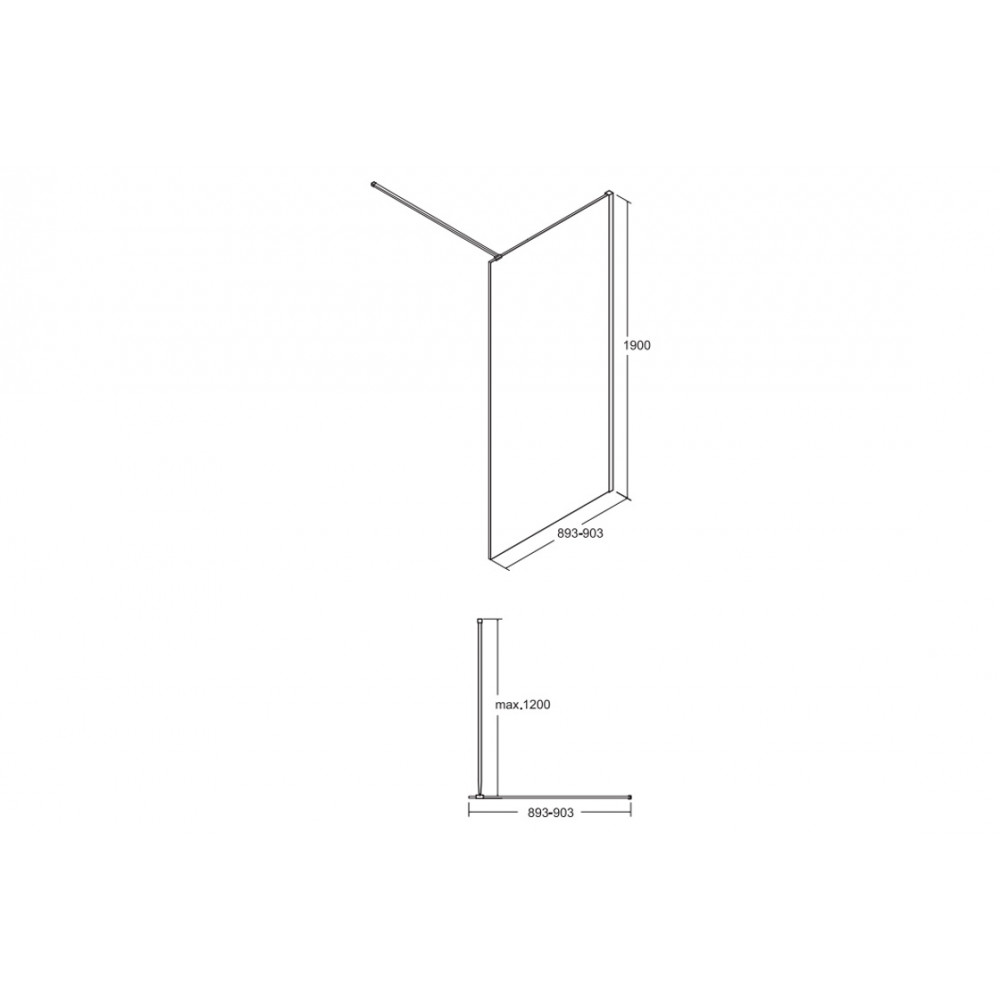 Опис Кабіна walk in TOCA 90x190 скло прозоре, чорний профіль