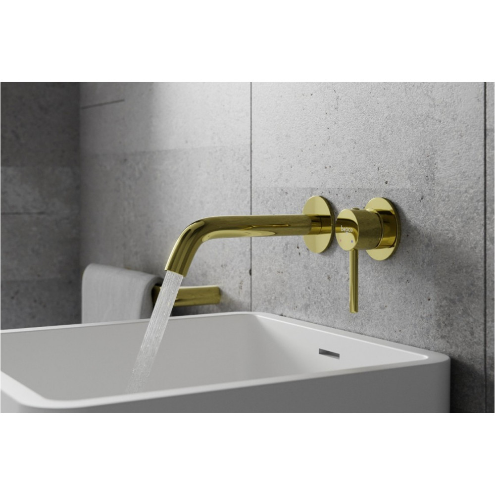 Змішувач до умивальника зі стіни VEO яскраве золото (#13436-01)