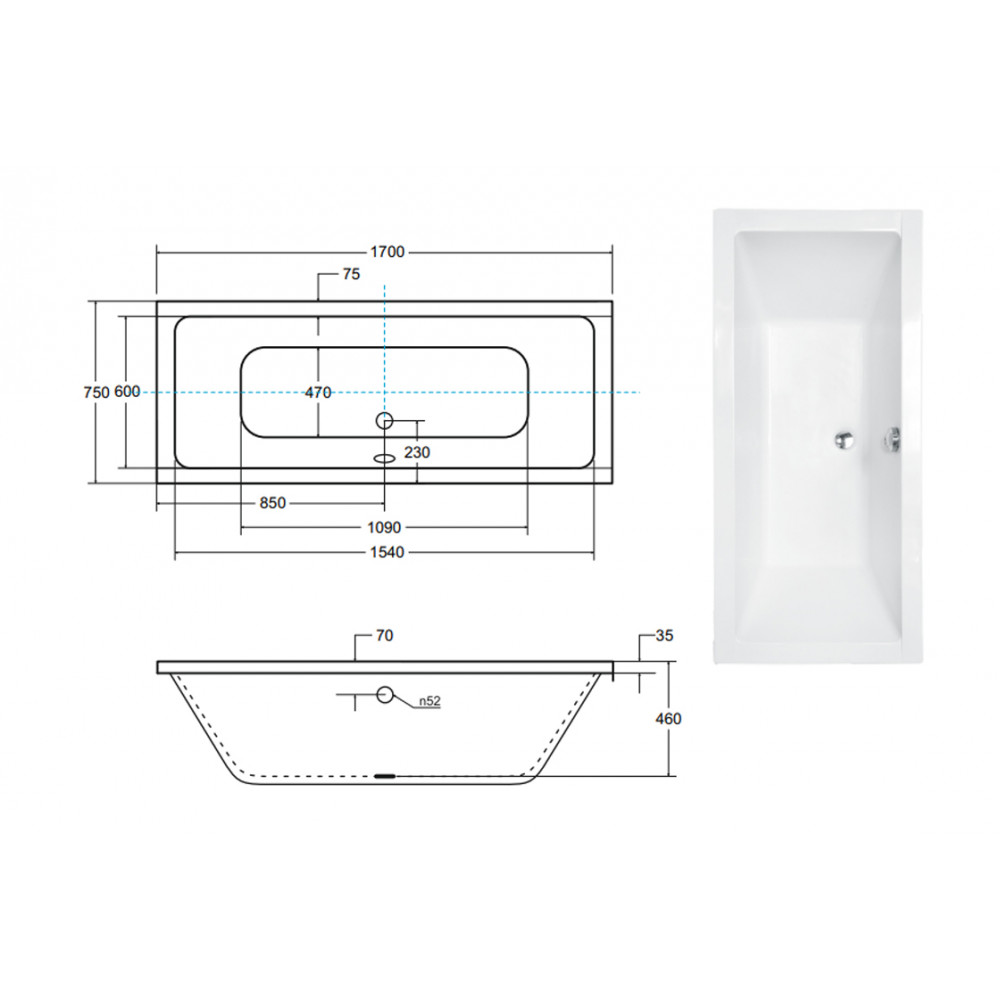 Опис Ванна VERA 170х75 з сифоном без обудови