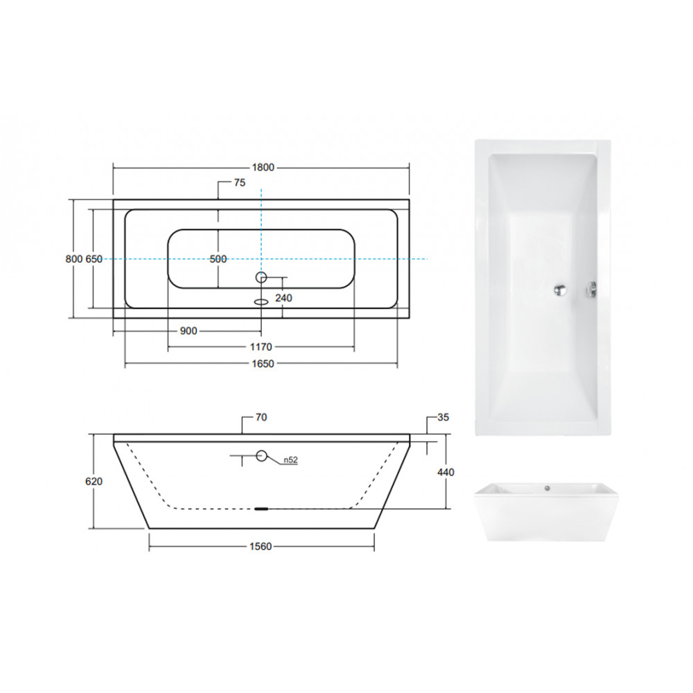 Опис Ванна VERA 180х80 з сифоном і обудовою