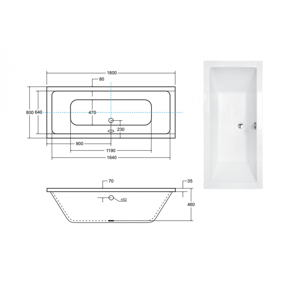 Опис Ванна акрилова VERA вільностояча 180х80 з сифоном БЕЗ обудови