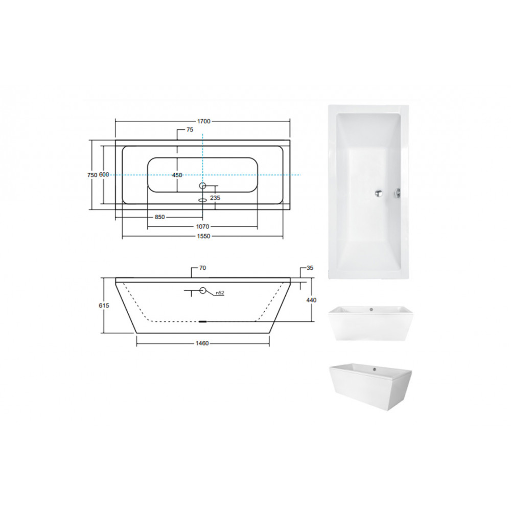 Опис Ванна вільностояча VERA 170х75 з сифоном Alcaplast з тонким переливом з верхньою очисткою хром