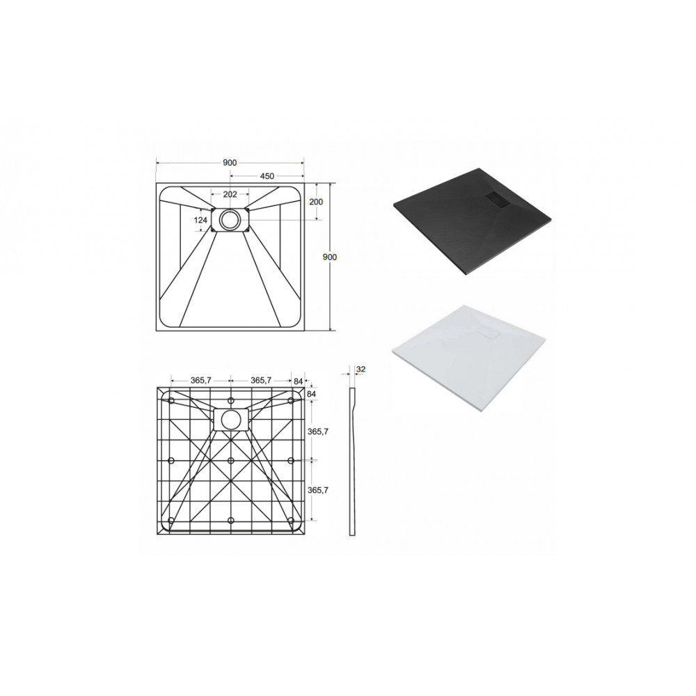 Піддон квадратний VEXO 90х90 чорний + сифон (#13445-01)