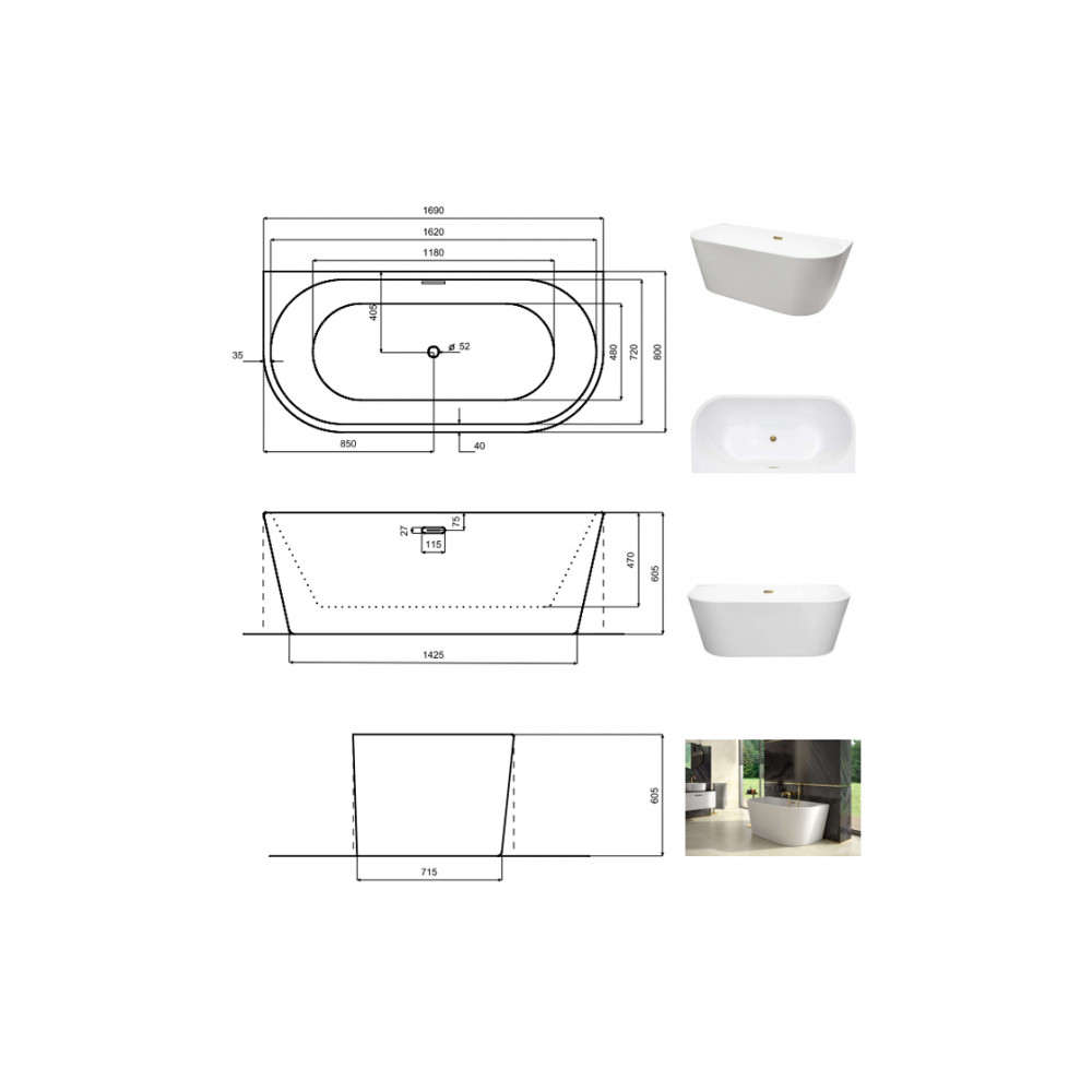 Опис Ванна акрилова VICA NEW 170х80 з сифоном Alcaplast з тонким переливом, з верхньою очисткою, хром