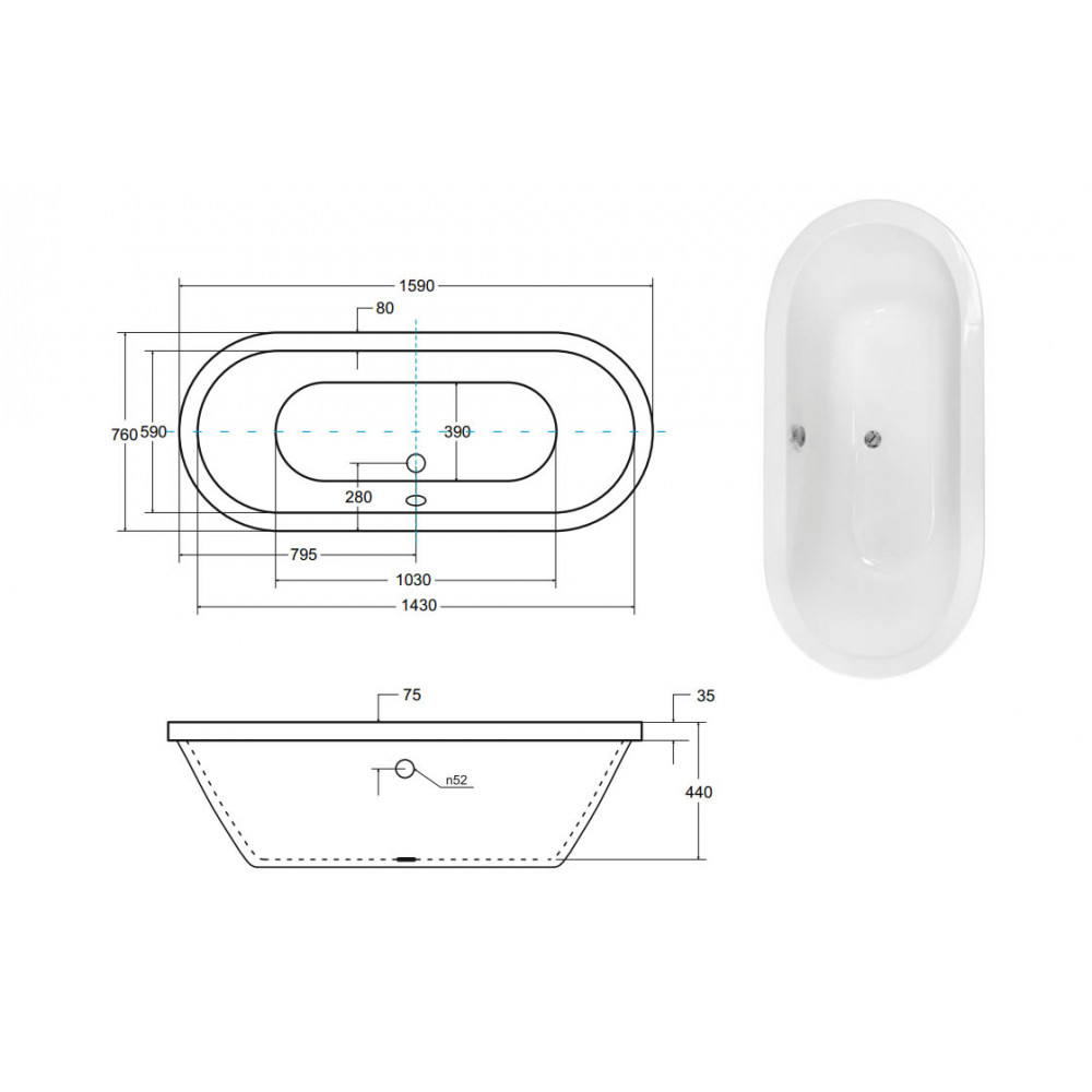 Опис Ванна VICTORIA 160х75 з сифоном БЕЗ обудови