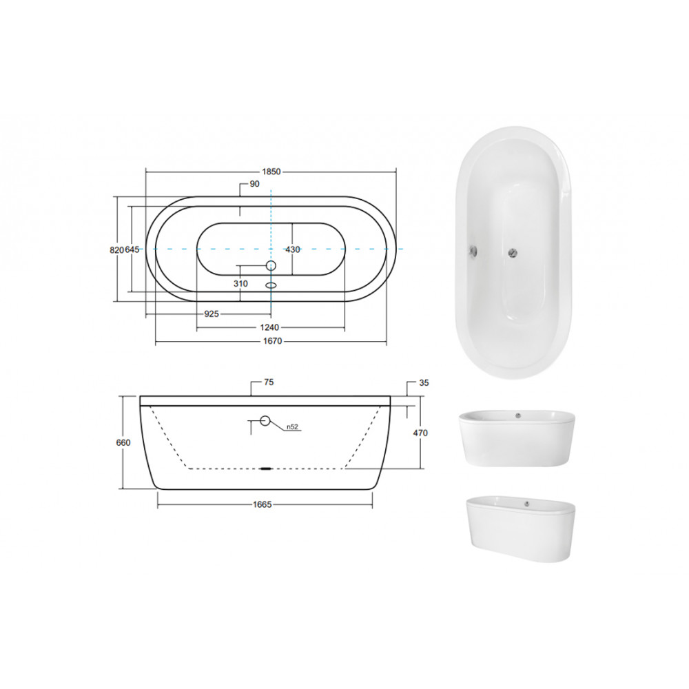 Опис Ванна VICTORIA 185х83 з сифоном (чорна зовні, біла всередині)