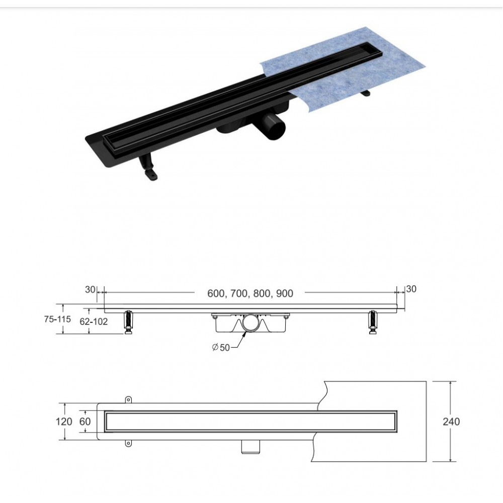 Опис Лінійний душовий трап Virgo Nero Duo 90