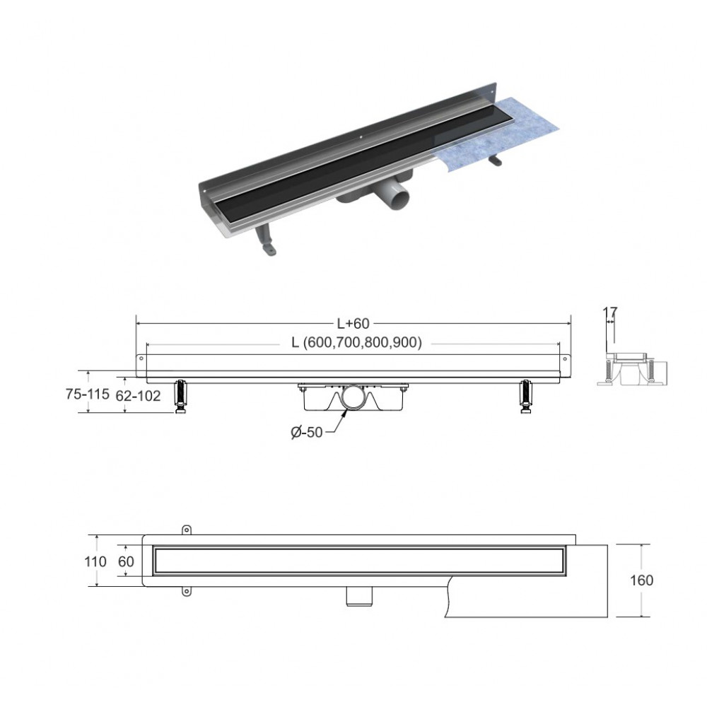 Лінійний душовий трап Virgo Next Black 80 (#13493-01)