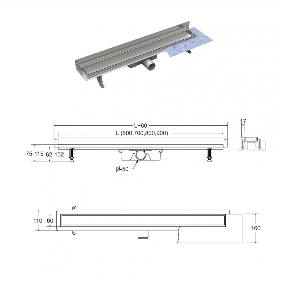Опис Лінійний душовий трап Virgo Next Duo 90