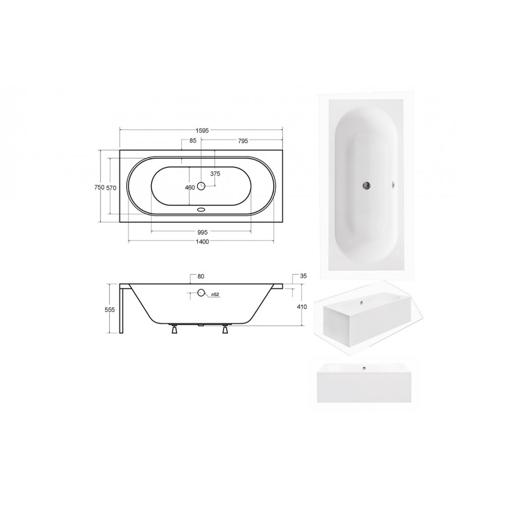 Опис Ванна акрилова VITAE 160х75 (соло) без ніг