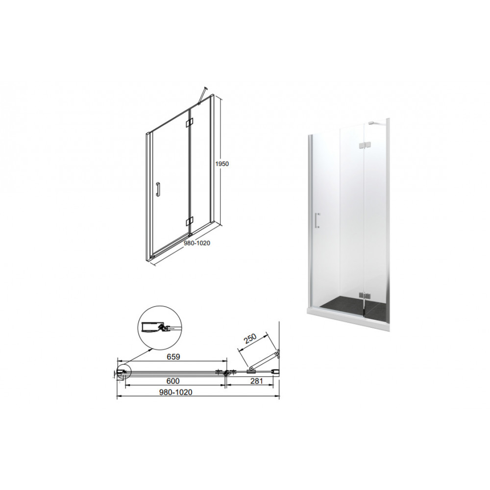 Опис Душові двері Viva 100x195 R праві хромовані блискучі