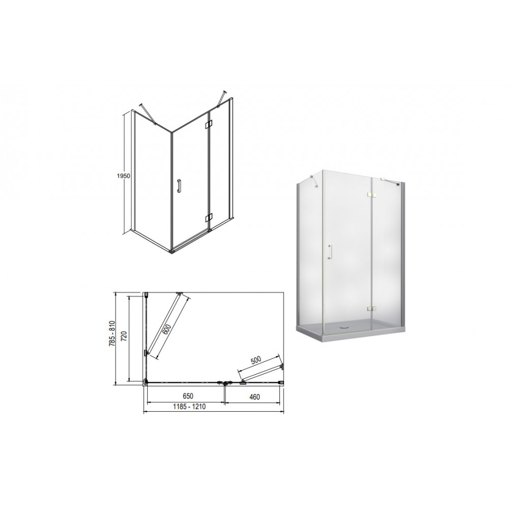 Опис Кабіна прямокутна VIVA 1200x80x195 права: скло прозоре, профіль хромований