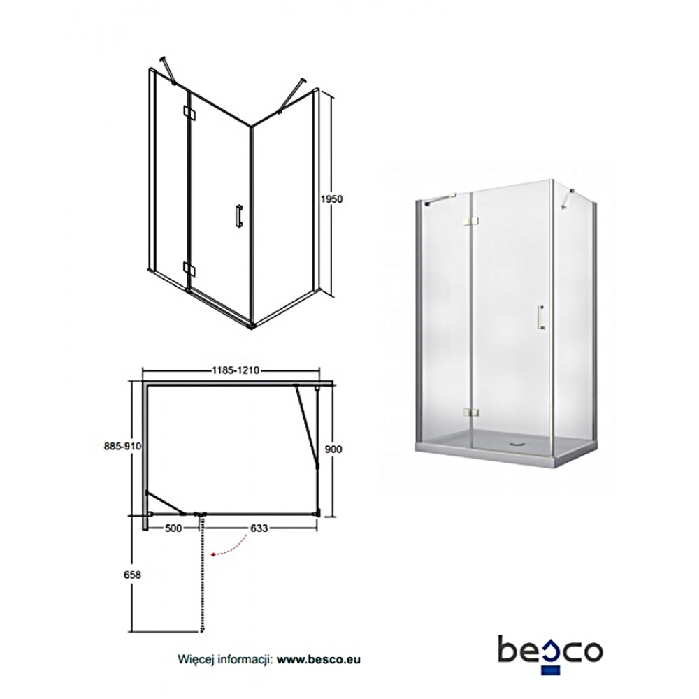 Опис Кабіна прямокутна VIVA 1200x90x195 ліва: скло прозоре, профіль хромований