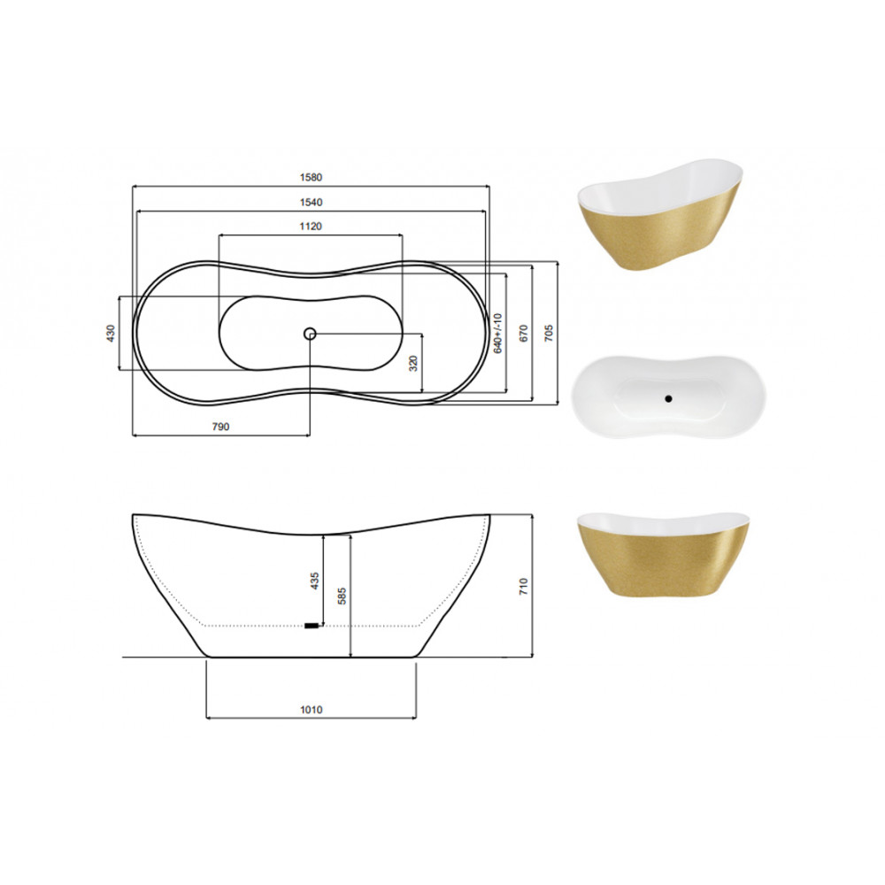 Опис Ванна VIYA GLAM к/золотий вільностояча 160х70 з сифоном клік-клак