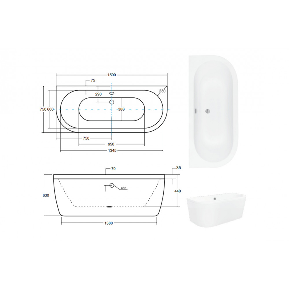 Ванна VOLYA 150х75 з сифоном (#13536-01)