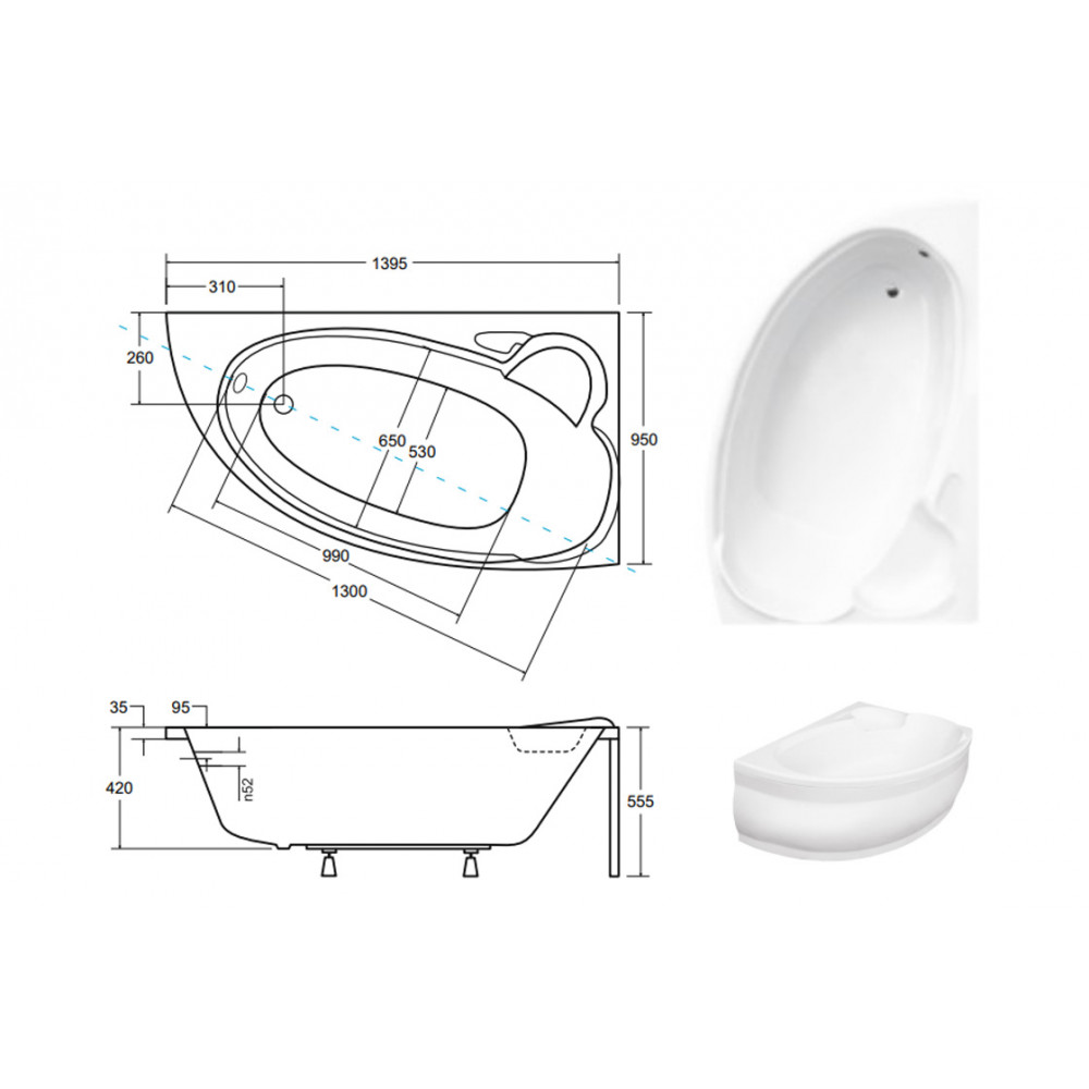 Опис Ванна акрилова WENUS FINEZJA 140х95 Права (соло) без ніг і обудови