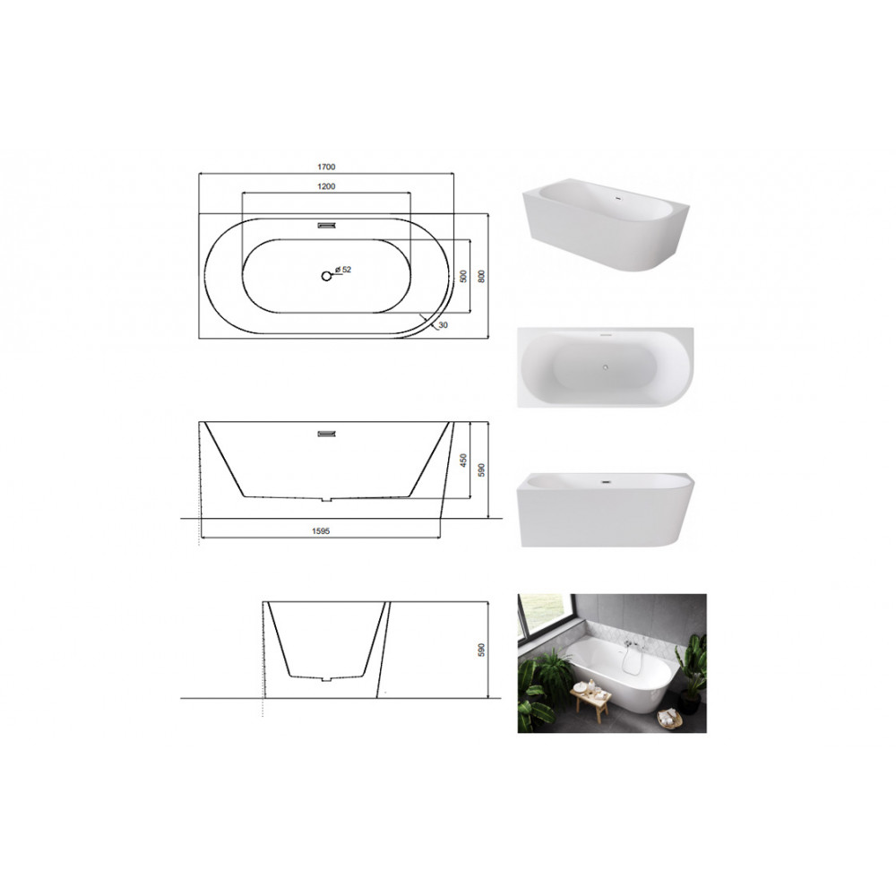 Опис Ванна акрилова ZOYA 170х80 ліва з сифоном клік-клак хром