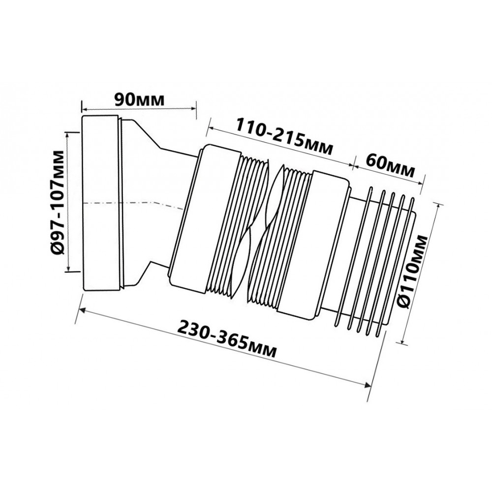 Опис Коліно-підключення еластичне до WC під кутом 14 з ущільненням (довге) WC-CON7AF