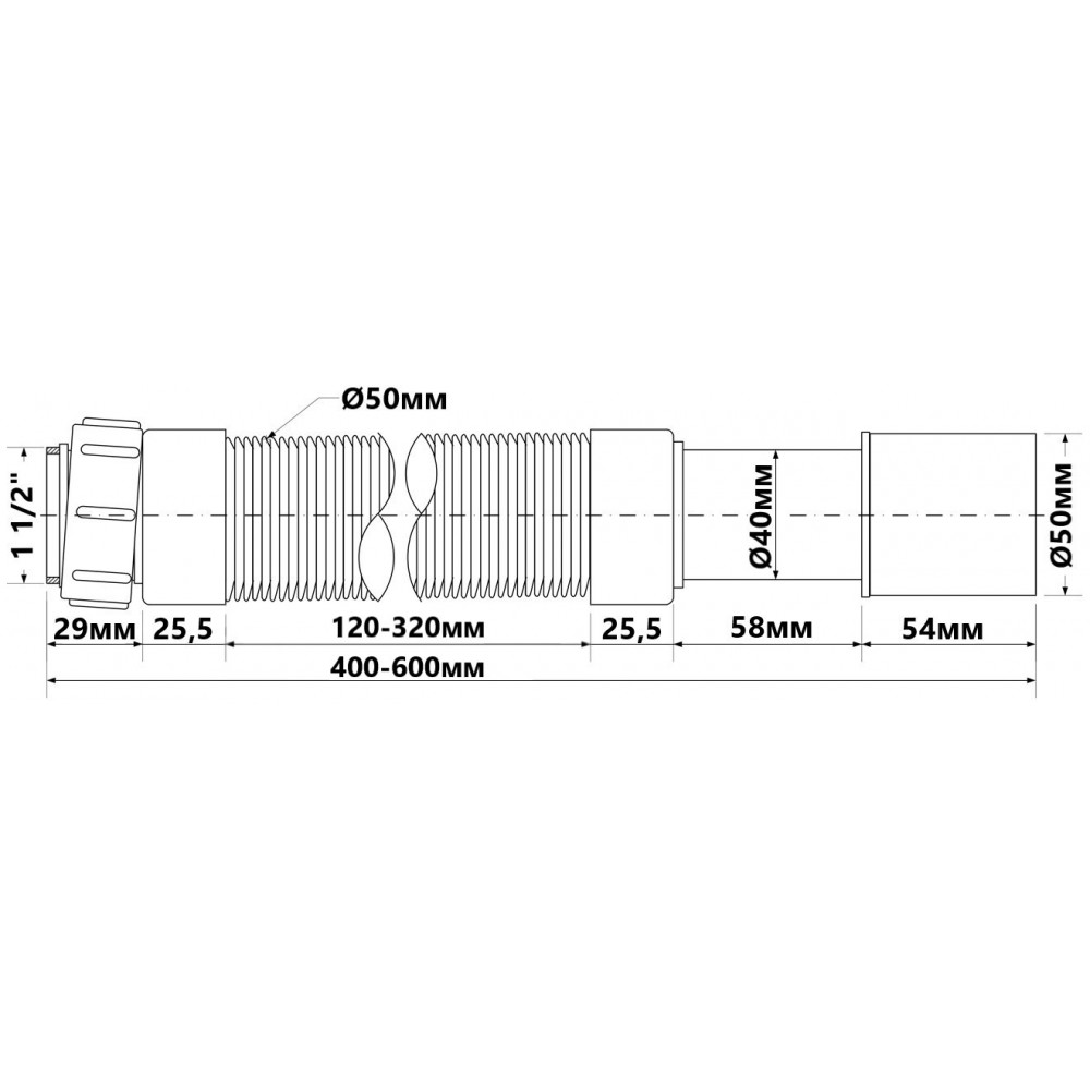 Опис Труба розтяжна 1 1/2"х40/50, L-600мм FLX-HC27-600MM