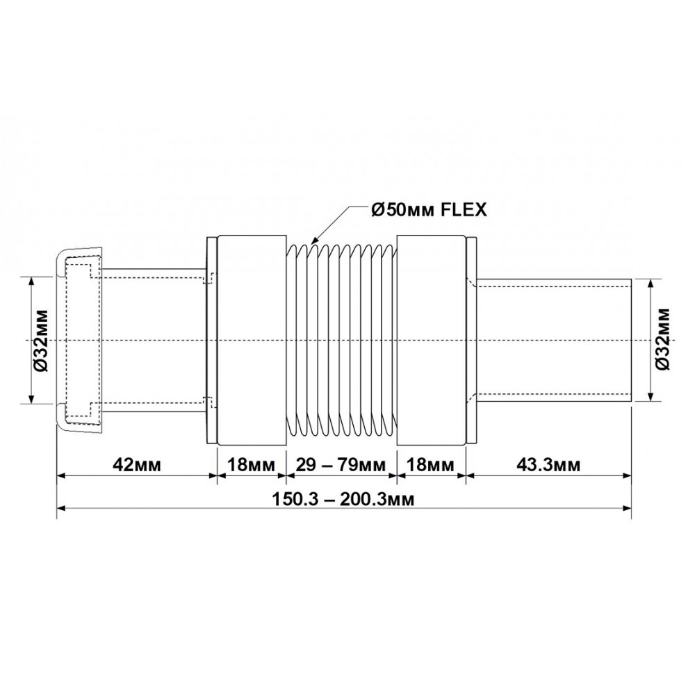 Опис Труба розтяжна 32х32мм (L-150,3-200,3) MFLEX-32PF