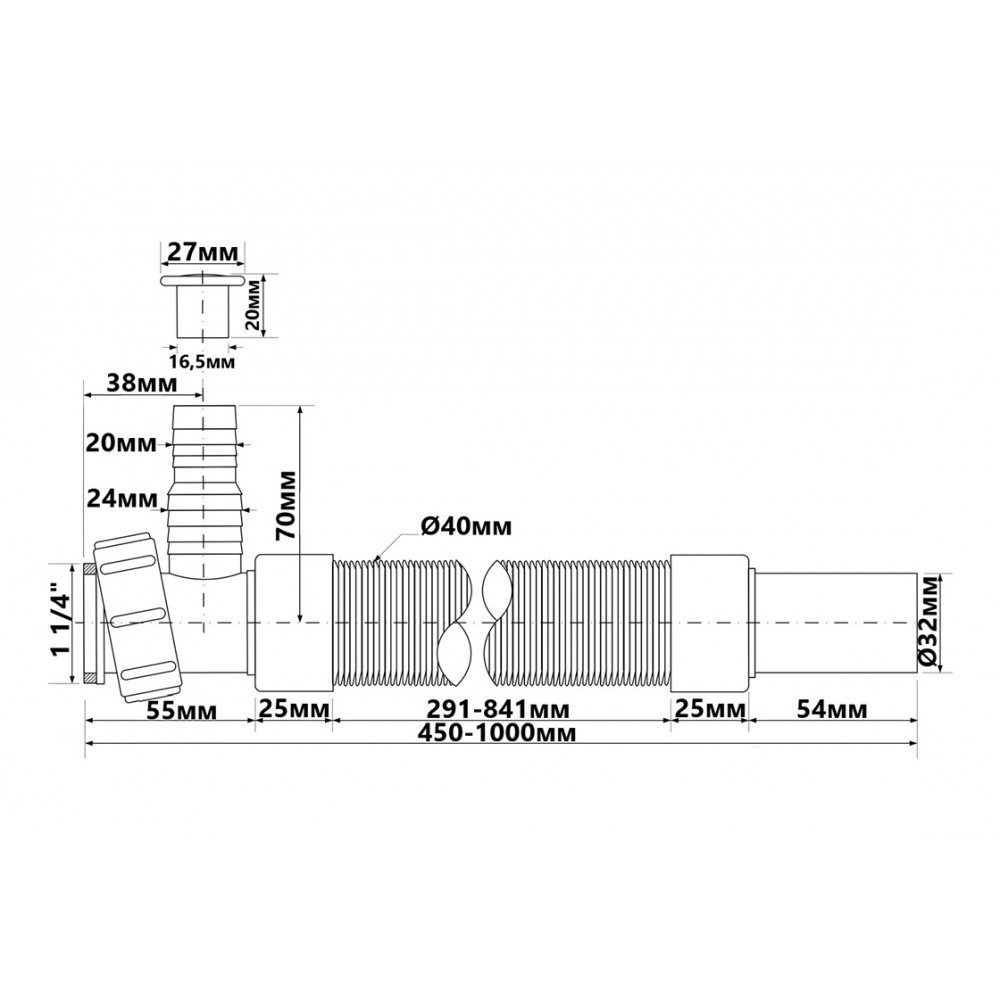 Опис Труба розтяжна з підключенням до пральної машини (11/4х32) 1 м. MRMF1W