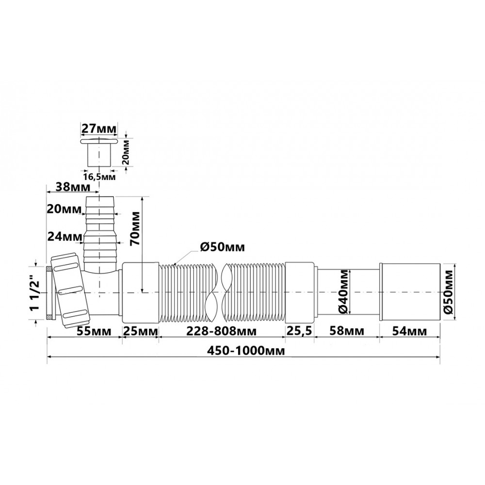 Опис Труба розтяжна з підключенням до пральної машини 11/2х40/50 1 м. MRMF2W